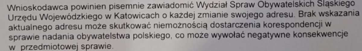 26. у меня вообще нет адреса на карте; подаваться нужно по месту фактического проживания, у вас должно быть замельдование в мазовецким чтобы подать там , или что-то еще что вас связывает с этой локацией (например договор о покупке/аренде жилья в данном регионе) "Uznanie za obywatela polskiego następuje na wniosek zainteresowanej osoby. Wniosek o uznanie za obywatela polskiego składa się do wojewody, właściwego ze względu na miejsce faktycznego zamieszkiwania cudzoziemca (tzn. miejsca, w którym koncentruje się ośrodek interesów życiowych cudzoziemca)." толкование довольно размытое - "сфера интересов в данном месте" (это может быть например жилье, зарегистрированный бизнес), скорее всего вам откажут если нет доказательств фактического проживания в данном регионе