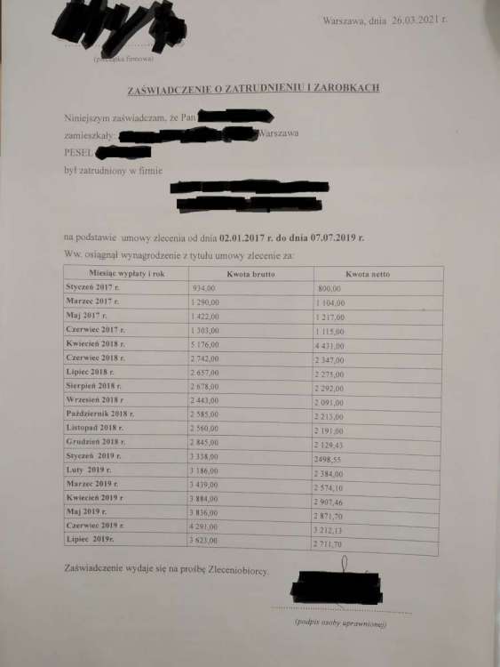 В том-то и дело что не собираюсь. Просто у меня слегка странный арендодатель(это академик) и там просто срок контракта от 1 октября до 30 июня. А потом я живу "по внёску" на жильё в летнее время" - а это не есть аннекс к умове найму и не умова найму сама по себе. К внёску я добавил справку о "запевнению замешкания до 30.09.2021" - но это филькина грамота - им нужна умова. Если бы я что-то доносил - то это бы было другое снятое жильё (скорее всего комната) на три - четыре месяца, а жить я собираюсь по тому адресу который указал во внёске. О, интересно - поищу себе - спасибо. А что вы имеете в виду, говоря отшивал? меня терзают смутные сомнения - моя учельня, боюсь этих складок не платила - в справке из зус - нет ничего перед 2018 годом.... Точно также мне кажется - редко увы уженды помещаются в сроках. Святая правда : ) Слушайте у меня ещё два страшных сомнения появилось. 1. Если смотреть по ПИТАМ за 2018 год - у меня выходит достаточный доход. Если смотреть по выписке дохода работодателя - то выходит что я в 2018 от апреля начал зарабатывать. То есть работал в МАРТЕ - а за март мне заплатили в АПРЕЛЕ.(фотку тут тоже добавляю). Я подался в Марте 2021 а заработок у меня от Апреля 2019 = стаж заработка 2 года 11 месяцев. На если взять заработок за все месяцы 2018 и поделить на 12 то выходит - что у меня на весь год хватает дохода. Получается я себе в ногу выстрелил донося эту выписку? 2. Значительно более страшное сомнение. У меня карта часового без приписки к работодателю (ура вузу). Всё время побыта на карте работаю у того же работодателя, НО - мне повысили зарплату, и я перешёл с умовы злецения на умове о праце. Я это не зглосил потому как был убеждён, что зглашать надо изменение работодателя и изменение зарплаты вниз, а вверх можно этого не делать Я прочитал несколько постов и кусок законов и окончательно запутался - правильно ли я думал или нет? И грозит ли мне, идиоту, в связи с этим депортация?