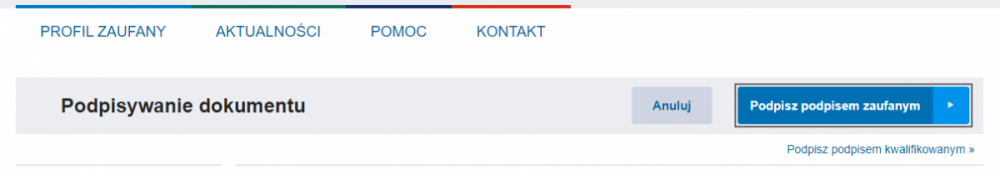 Ну вот как раз нужно по ссылочке которую я давал выше зайти, залогиниться на профиль зауфаны под логином-паролем, потом на том экране где пишет о подпись профилем зауфаным нужно кликнуть на синюю кнопку как на скриншоте ниже. Если у вас к профилю ePUAP привязан номер телефона (вроде без него нынче нельзя), прийдет СМС с одноразовым кодом, который нужно ввести в окно открывающееся после нажатия кнопки. И потом вы увидите полный список личных данных по номеру PESEL, включая obywatelstwo.