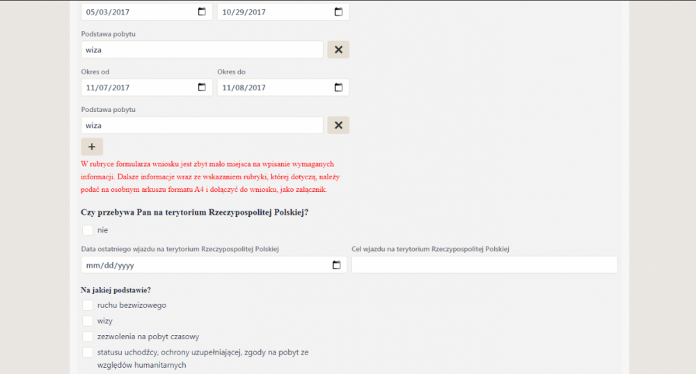Що робити у випадку коли в мене 18 załączników а в рубриці можна тільки 10 вписати? Також цікавить питання що робити коли не вистачає місця в рубриках "poprzednie pobyty na terytorium RP" та "pdróże cudzoziemca i pobyty zagranicne oza terytorium RP"? Додати як załącznik ? Наприклад вписати "w załączniku"?