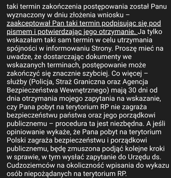 дело в том, что не под какими терминами я не подписывался, кроме подписания получения этого самого письма с указанием этого срока. Спорить с ней я не стал, отзывы вроде неплохие об этом инспекторе, да и ответила она на мейл в течении часа, будем ждать, пока что время ожидания 4мес