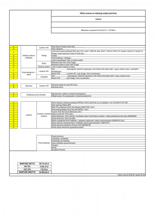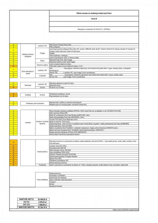 в июне нам делали оценку стоимости ремонта квартиры в гданьске от застройщика (фирма выконьченева тоже от застройщика) - было несколь вариантов ремонта - пакет S, M, L. как видно из "размеров", чем больший размер, тем больше в себя включает позиций и соответсвтенно дороже. Выценяли нам квартиру примерно 64м2 цены показались весьма приятными