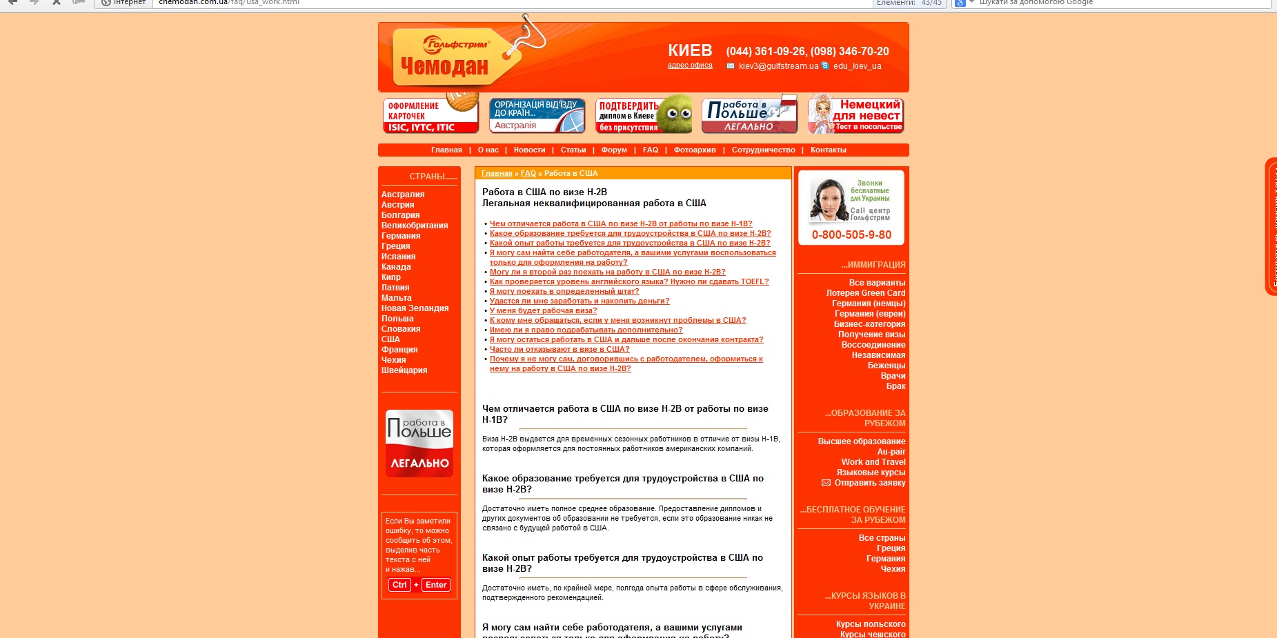 warrom Опубликовано 17 марта, 2013 Жалоба Опубликовано 17 марта, 2013 Согласен с vlad500,если так будет продолжаться тему прикрою, это противоречит правилам форума! Пишите по сути вопрос-ответ. Модератор. перше і головне питання: кто нибудь может посоветовать конкретное, проверенное, честное трудовое агенство которое занимается такой программой которая описана в этой теме: <noindex>Работа в США по визе H-2B</noindex> или ета страница <noindex>Легальная неквалифицированная работа в США</noindex>, чи це взагалі можливий та реальний варіант... друге питання: чому від вашого сайту ця програма на роботу не доступна <noindex>Работа в США по визе H-2B</noindex> На настоящий момент услуги по программе РАБОТА В США ПО ВИЗЕ H-2B не предоставляются, яка причини; це вже назавжди! чи це тимчасовий! статус??? третє питання: чи можливо ці законодавчі зміни: В связи с изменением иммиграционного законодательства США, набор на программу H-2B не проводится. Согласно новому законодательству, трудоустройство по визе H-2B для иностранных работников должно осуществляться бесплатно, все расходы, связанные с оформлением рабочей визы H-2B, должны оплачиваться американским работодателем. Если какая-либо украинская компания предложит Вам работу в США по визе H-2B, и потребует оплату за услуги по оформлению рабочей визы H-2B - это является прямым нарушением закона. Советуем в таких случаях сразу уведомлять Министерство Труда и Социальной Политики Украины, а так же визовый отдел посольства США... зробили неможливою цю програму від трудових агенств??? буду вдячний за прямі та конкретні поради, відгуки... Цитата